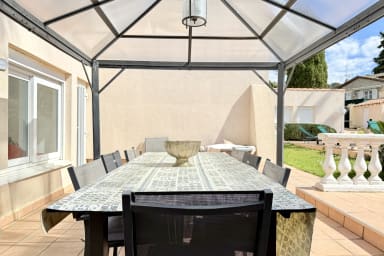 Bienvenue dans cette magnifique villa provençale située à Mougins, à quelques minutes de Cannes et de la Méditerranée. Spacieuse, lumineuse et entièrement équipée, elle est parfaite pour des vacances en famille ou entre amis, pouvant accueillir jusqu'à 16 personnes.